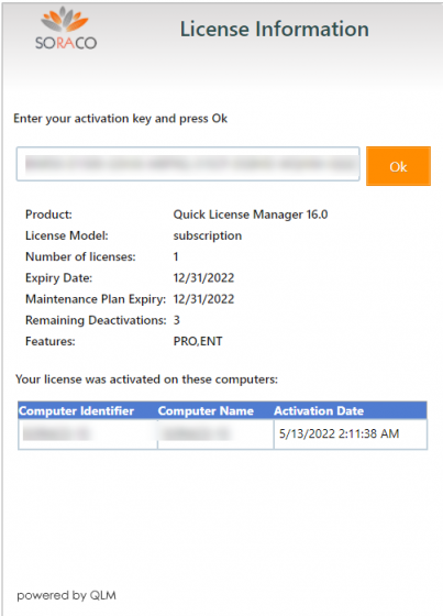 QLM Self Help now displays the detailed license information including the number of remaining deactivations, Analytics Last Accessed Date, and Product Properties.