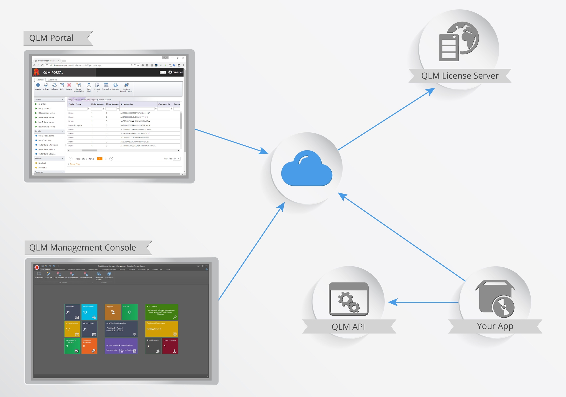 QLM Professional and Enterprise store license keys as well as customer-related information in a database on the License Server.